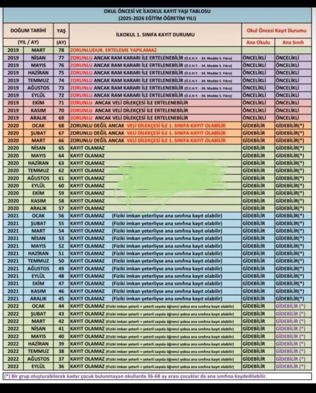 2025-2026 Eğitim Öğretim yılında okul öncesi, ilk ve ortaokula başlayacak öğrencilerin okul kayıtları, MERNİS adres bilgileri esas alınarak e-Okul sisteminden yapılacaktır.